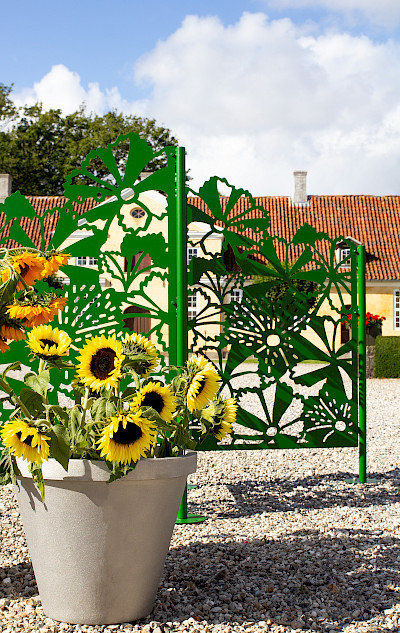 Daggkåpa is an outdoor screen system and space divider that can be installed in a range of configurations. The supporting posts are available in two heights, and the screens can be installed at several angles. Daggkåpa is designed with flexibility in mind, creating an adaptable screen that is quick to install and easy to enjoy. Daggkåpa can be bolted to the ground to provide additional stability. The motif on Daggkåpa’s panels was inspired by the leaves of the Lady’s Mantle plant.