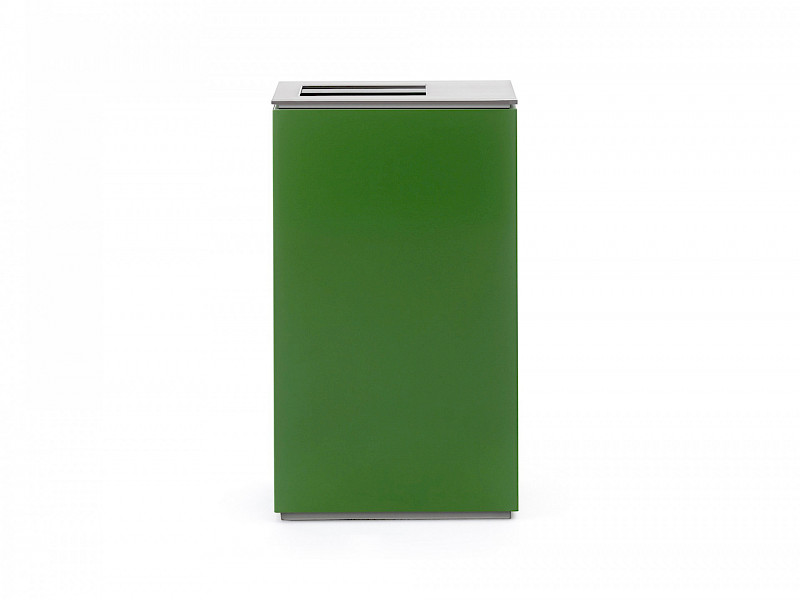 The sleek shape of this contemporary litterbin disguises its spacious proportions. Made with an inner container that pulls outward to empty, removing litter and replacing the waste bags couldn’t be easier. Comes in color green RAL 6017 with a concrete base.