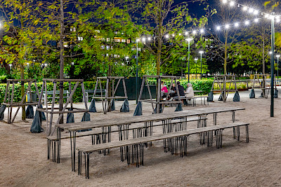 Accoya®trä är resultatet av mer än 80 års forskning och utveckling av att modifiera trä genom acetylering, en form av ättiksvinäger. Träslaget som använts för Accoya® är en fura vid namn Radiata pine, ett snabbväxande träslag som är mer eller mindre fritt från kvistar. Accoya® trä har egenskaper som matchar eller överträffar de tropiska träslagen men tillverkas med hjälp av en giftfri process och använder trä från förnyelsebara FSC-certifierade skogar. Träet har en ljus färg som grånar med tiden. Accoya® kan också få gråsvarta prickar men det är ingenting som påverkar sitsens hållbarhet eller långa livslängd då det är väldigt slitstarkt. Träslaget rör sig mycket lite i förhållande till annat trä och klarar fuktiga och regniga miljöer utmärkt.