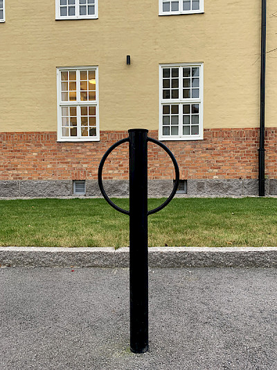 Goggle cykelpollare är funktionell och enkel med sin kombination av metallring och fristående stolpe. Ringar i toppen gör att cykeln säkert kan låsas fast i ramen. Cykelpollaren kan fås i olika kulörval, vänligen se produktbladet för mer information. Cyklarna kan placeras i rader eller arrangeras i böjda former för att anpassas efter miljön.